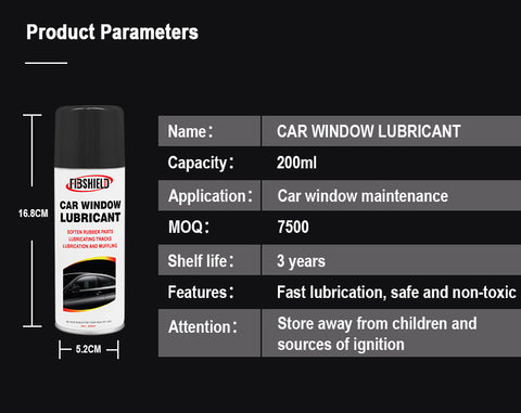 FIBSHIELD Car Window Lubricant is used for lubrication of the door, skylight slideway,